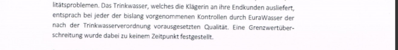 Das Amtsgericht verurteilte uns, es zu unterlassen, wörtlich oder sinngemäß zu behaupten, es gebe "Qualitätsprobleme beim Güstrower Trinkwasser" unter Androhung eines Ordnungsgeldes von bis zu 250.000 EUR und/oder Ordnungshaft von bis zu sechs Monaten.