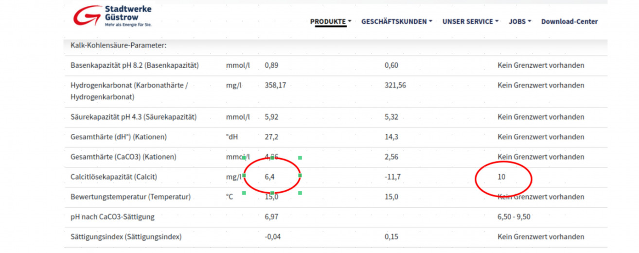 Der Grenzwert von 5 mg/l für die Calcitlösekapazität wurde mit gemessenen 6,4 mg/l CACO3 überschritten. Die Stadtwerke passten den Grenzwert auf 10 mg/l auf ihrer Internetseite an und erweckten mit dem falsch ausgewiesenen Wert den Eindruck, eine Grenzwertüberschreitung läge nicht vor.
